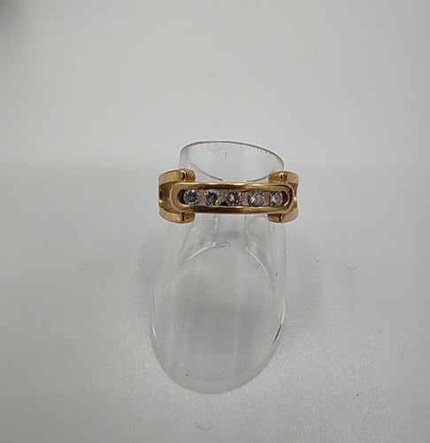 Ring mit 5 Brillanten eingebettet in einer ovalen Schiene in 14 Karat Gelbgold