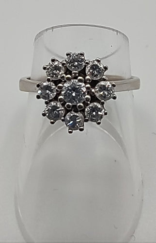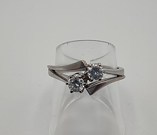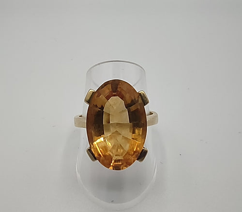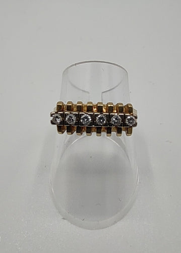 Brillantring mit 6 Brillanten auf aufgesetzter Weißgoldschiene in 14 Karat Gelbgold