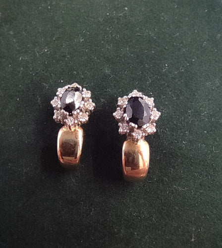 Saphirohrstecker mit Brillanten in 14 Karat Gelbgold
