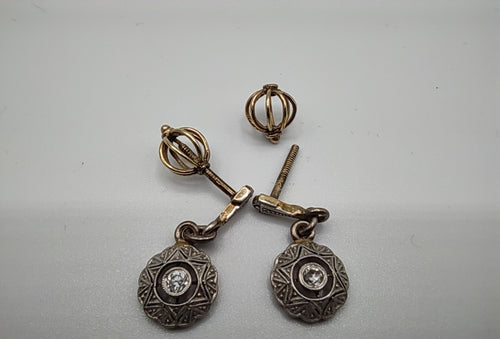 Gelbgoldohrringe Jugendstil mit Brillanten in 14 Karat