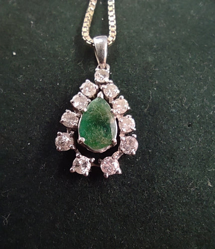 Brillantcollier mit großem Smaragd in 14Karat Weißgold